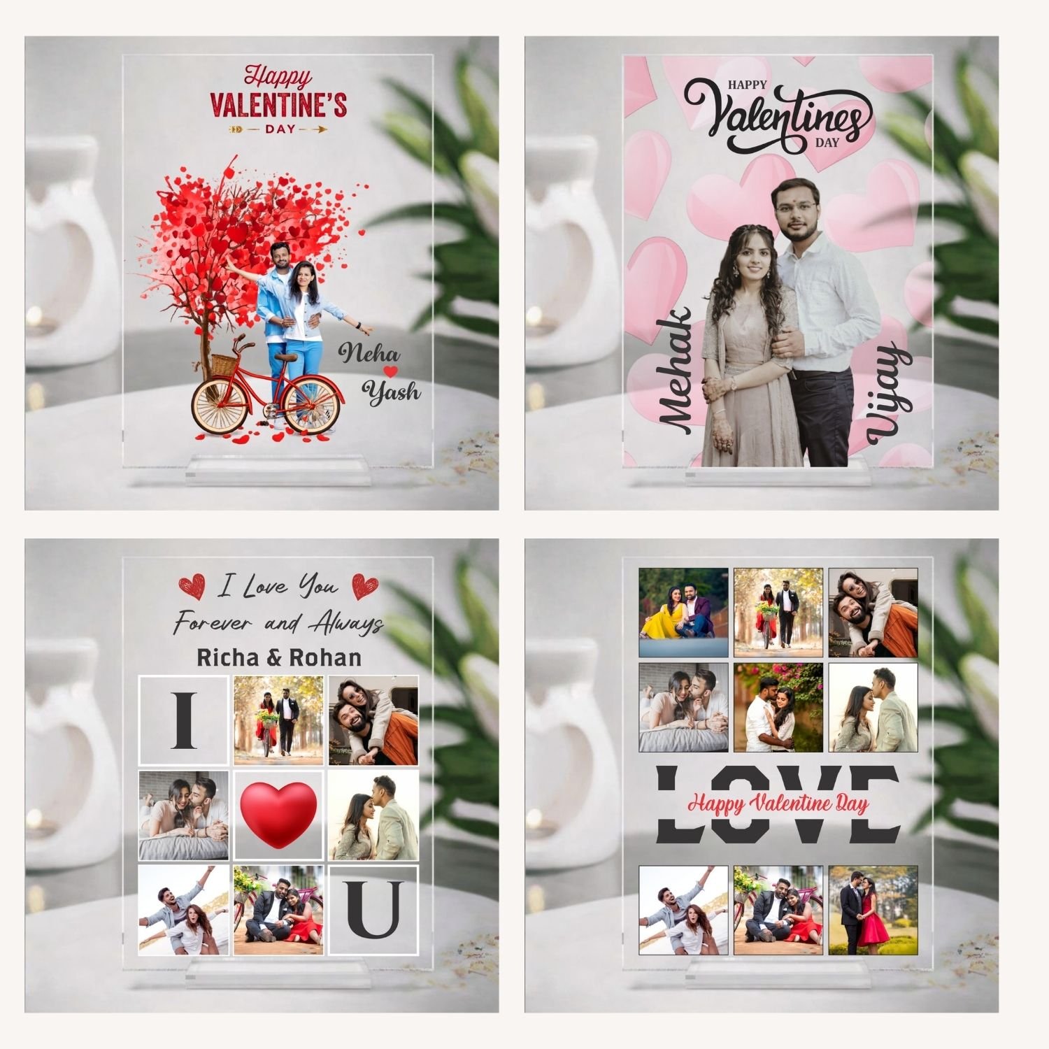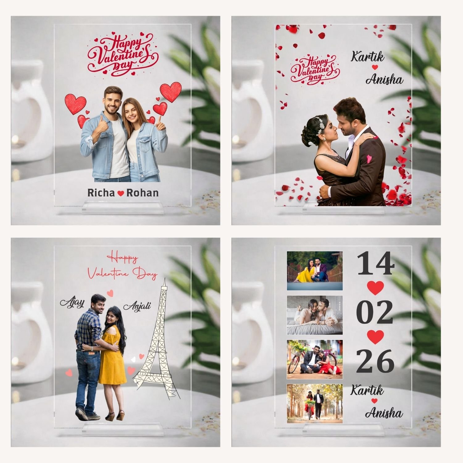 Perfect for Valentine’s Day, anniversaries, birthdays, or romantic surprises, this customised acrylic photo frame allows you to add your favourite photo along with names or a meaningful message. Its modern look and premium stand make it a beautiful décor piece for bedrooms, living rooms, or workspaces.