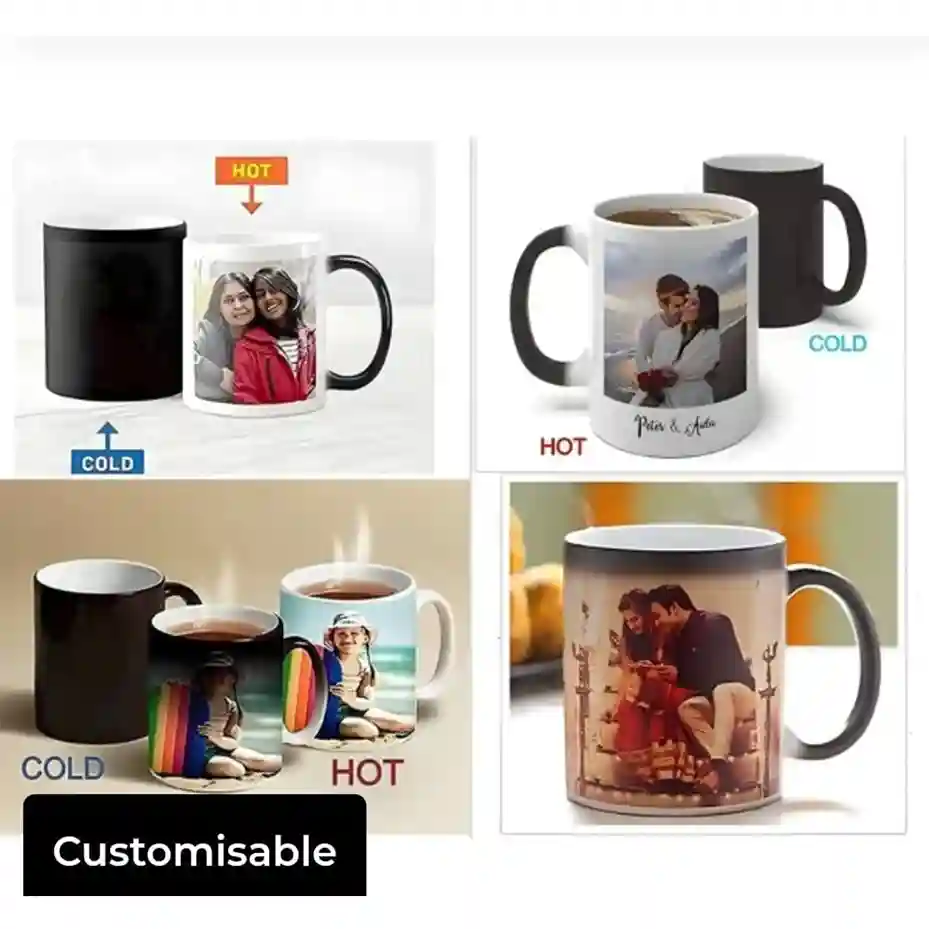 Give your loved ones the perfect surprise with our Customized Magic Mug. When the mug is cold, it looks completely black — but the moment hot liquid is poured, your personalized photo or message magically appears.